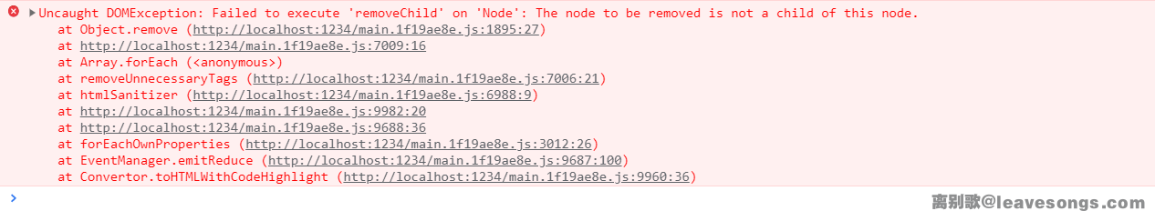 但是劫持后,执行removeChild操作时,因为这个函数内部有检查,所以会爆出Failed to execute 'removeChild' on 'Node': The node to be removed is not a child of this node.的错误: