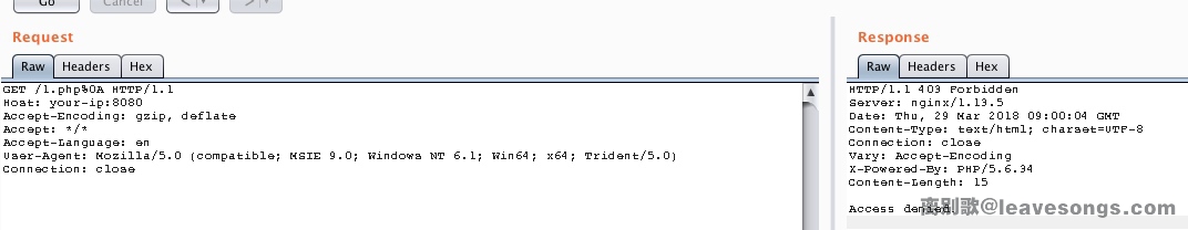 这也是我预想的结果,因为我在《Fastcgi协议分析 && PHP-FPM未授权访问漏洞 && Exp编写》已经提到过,fpm存在一个security.limit_extensions配置,默认只解析php后缀的文件,多一个换行也不行。