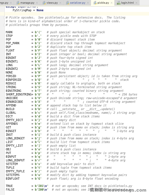 当然,编写pickle代码远不止这么简单,仍有几十个OPCODE我们没有用过,只不过我们现在需要的只是这部分罢了。