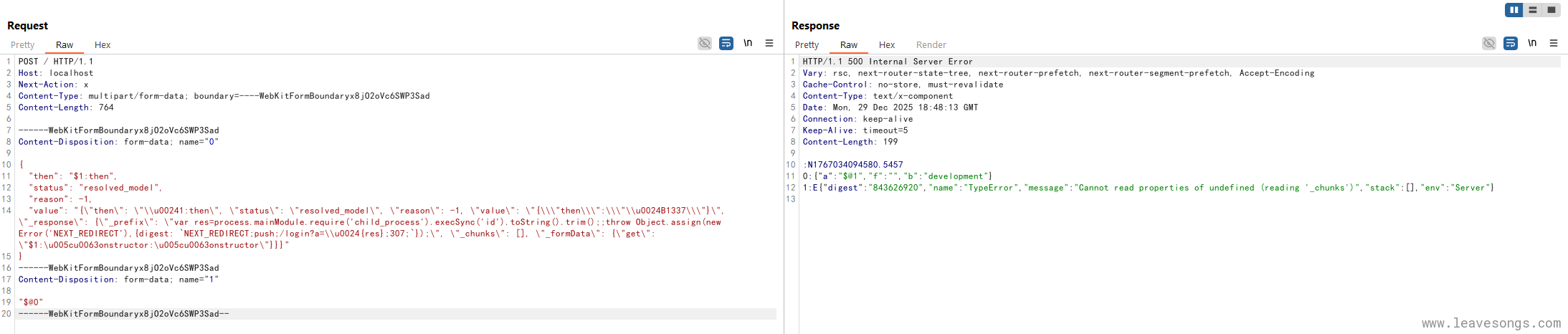 完全理解漏洞的原理已经是好些天以后的事儿了,如果回到React2Shell的POC刚出来那天,我一白天都在忙应急,兼着分析一下漏洞的原理,直到半夜还没完全弄明白核心原理,只是把外围的一些逻辑调试清楚了。