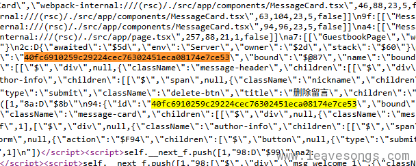 但是,如果我们要测试的目标存在至少一个server action,我们就可以在页面源代码或数据包中找到至少一个合法的Next-Action头: