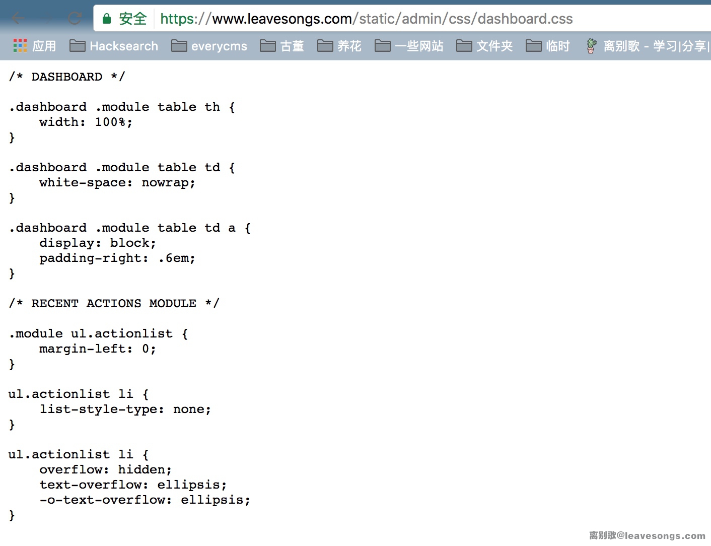 如 https://www.leavesongs.com/static/admin/css/dashboard.css 、 http://www.wuzheng.org/static/admin/css/dashboard.css 、 http://static.fuwo.com/static/admin/css/dashboard.css 、 http://www.lintcode.com/static/admin/css/dashboard.css