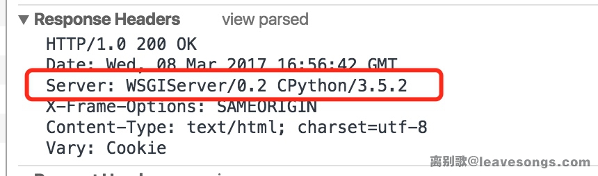 有的Django站点会返回Server头: