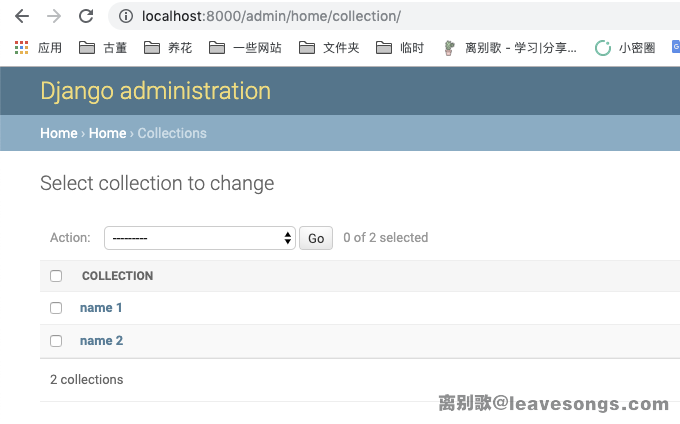 此时,进入后台就可以对Collection模型进行管理了。进入列表页面: