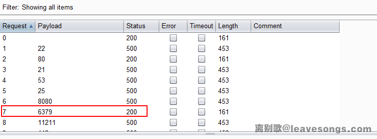 imagemagick这条路死了,我就没再研究这块逻辑。因为我不知道目标内网IP段,所以准备先探测一下127.0.0.1的端口,我列了一些常用端口,用Burp跑了一下: