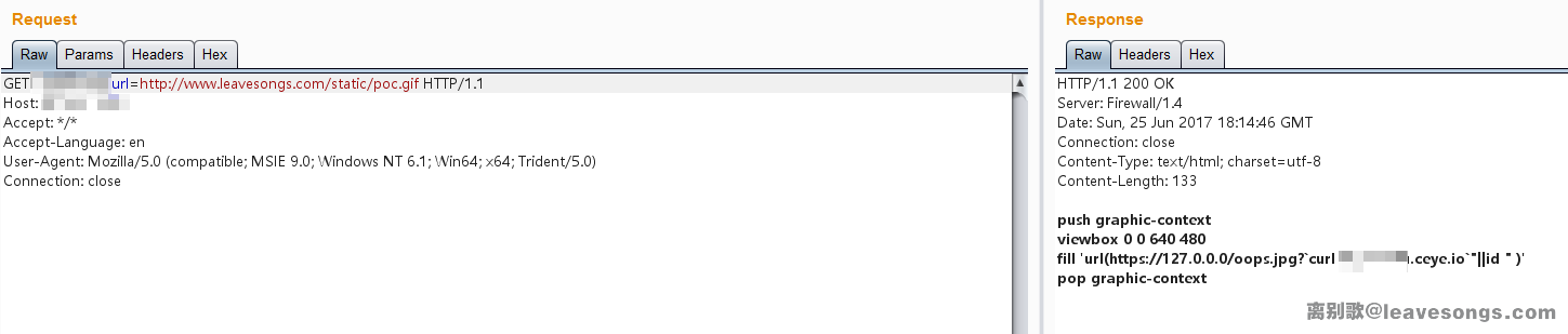 这时候我突然想到,既然是判断图片,会不会是用imagemagick组件来判断的?然后我将imagetragick的POC保存到外网的某个poc.gif里,然后让其访问: