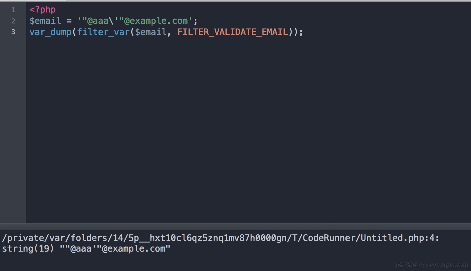 虽然PHP没有完全按照RFC 3696进行检测,但支持上述第2种写法。所以,我们可以利用之绕过FILTER_VALIDATE_EMAIL的检测。