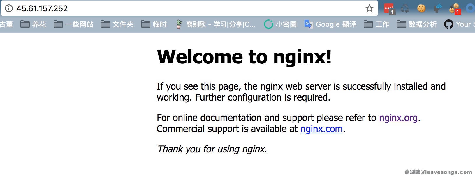 如果Nginx发现我们传入的Host找不到对应的Server块,将会发送给默认的Server块,也就是我们通过IP地址直接访问的那个Nginx默认页面: