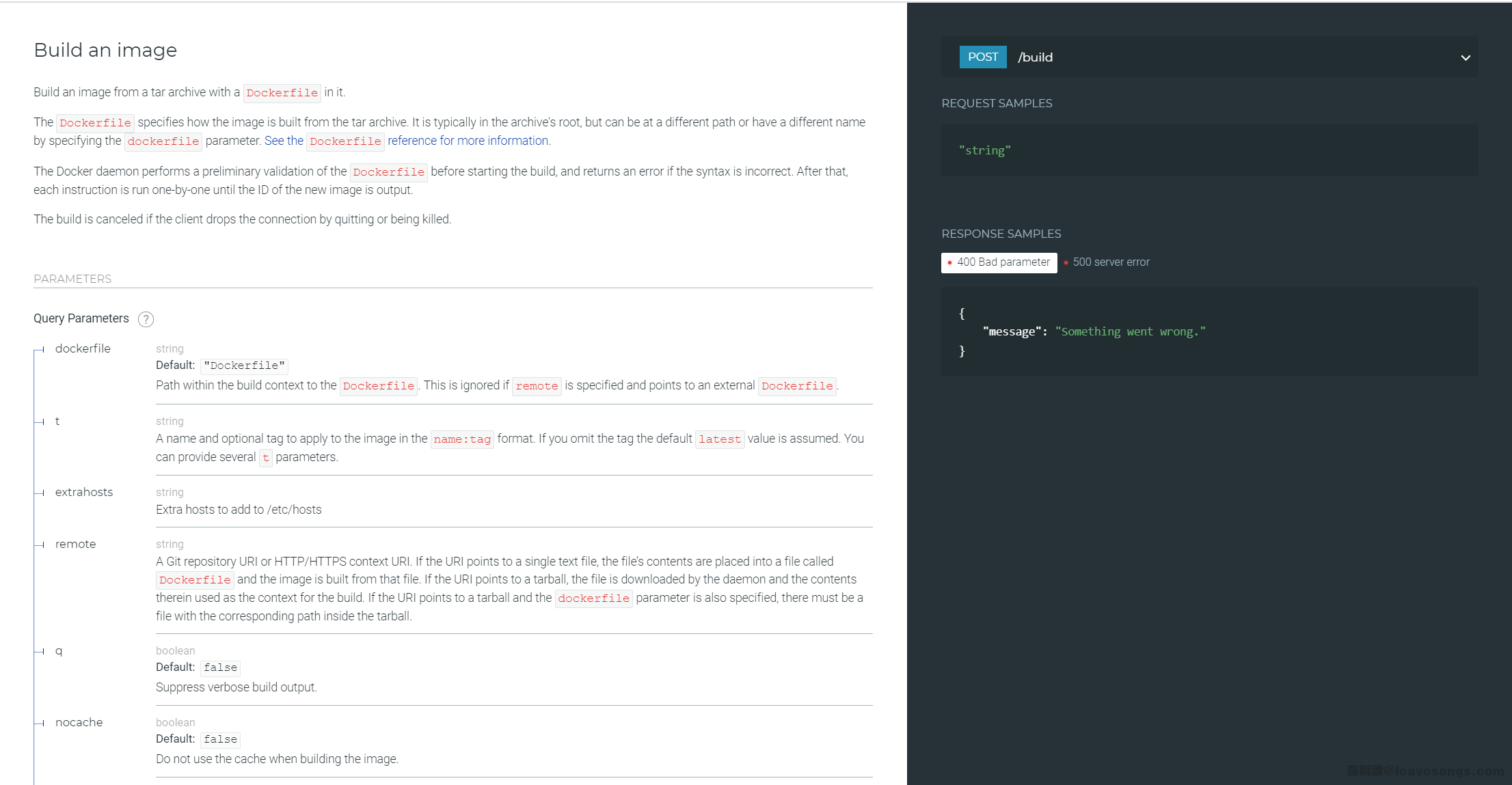 继续翻越Docker文档,我发现了另一个API,Build an image: