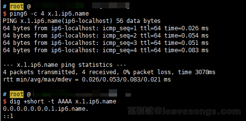 比如,我们可以通过x.1.ip6.name访问::1,也就是本地: