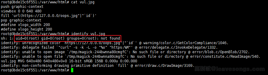 用存在漏洞的imagemagick进行测试,命令成功执行:
