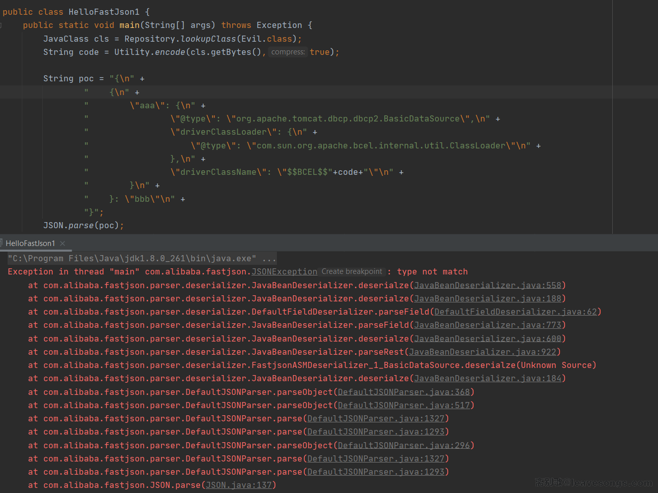 同样的代码,如果在Java 8u261下执行,则会出现一个异常: