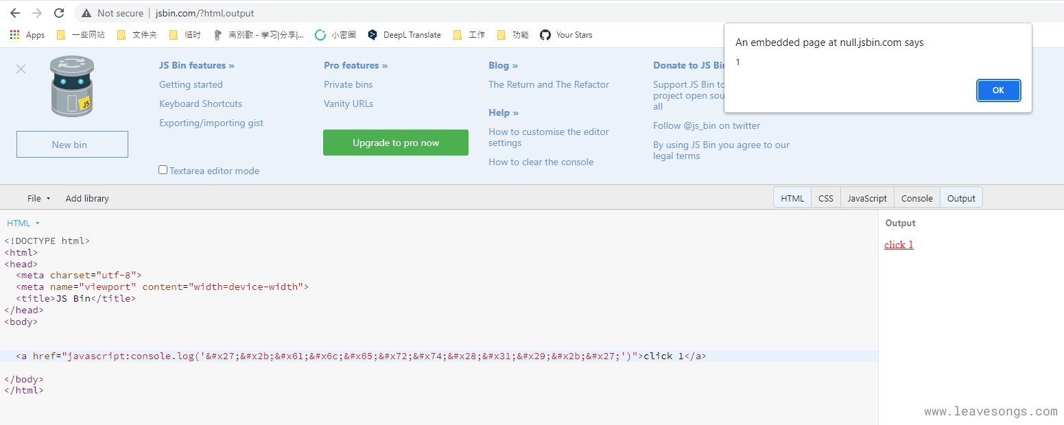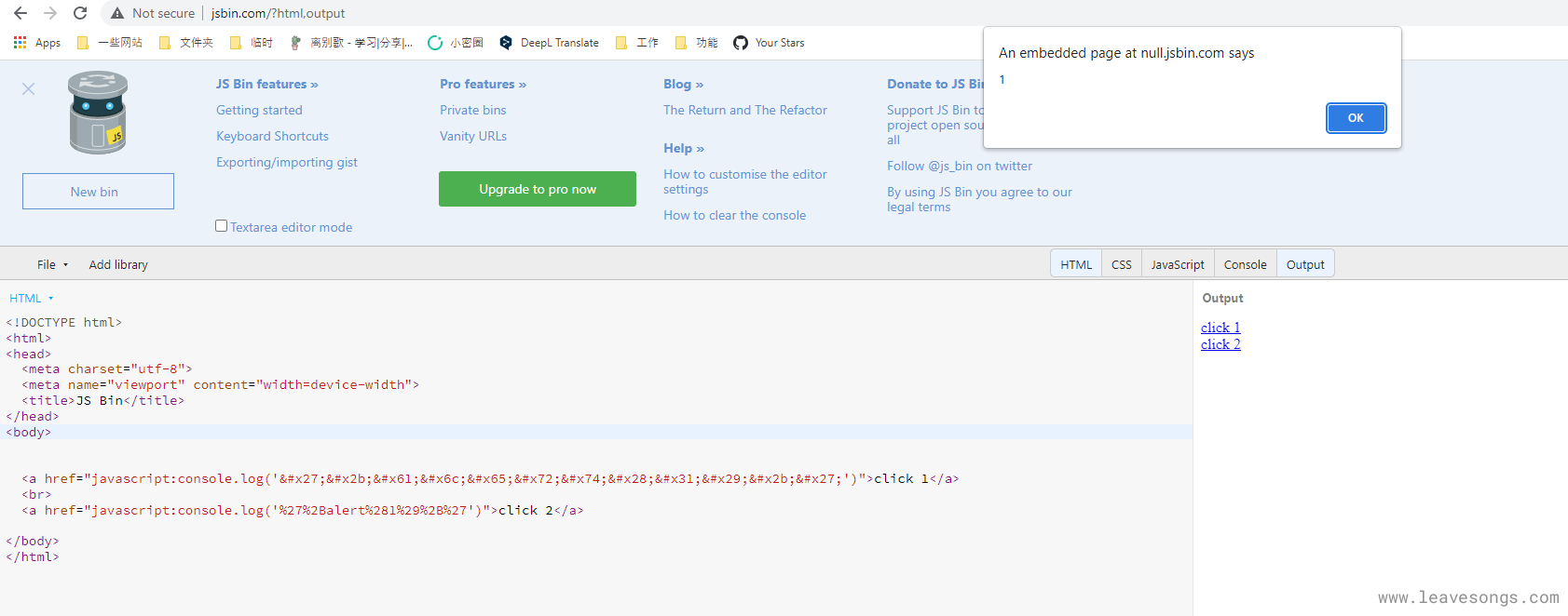 <a href="javascript:console.log(''+alert(1)+'')">click 1</a>