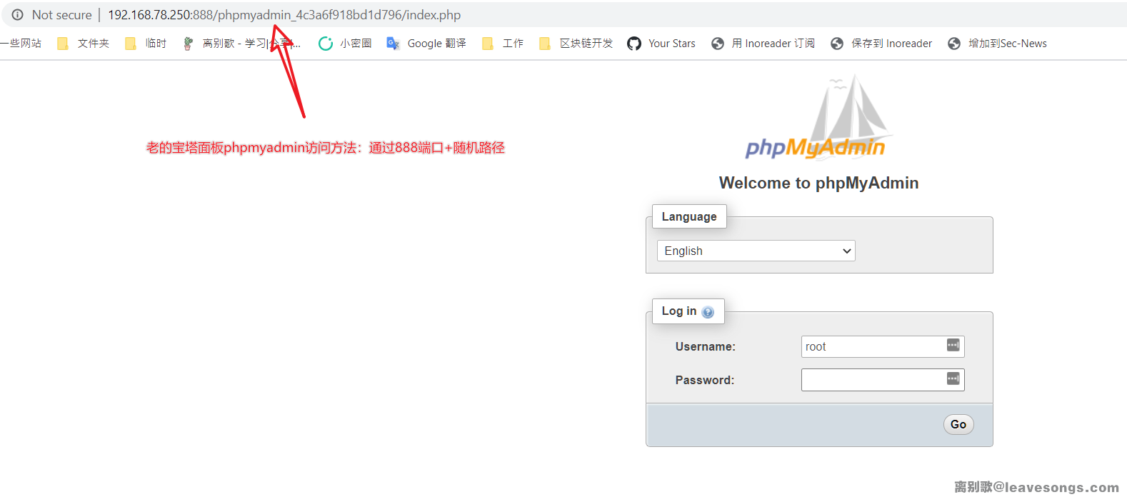 经过实际查看互联网上的案例和询问使用了宝塔面板的朋友,我发现在7.4.2以前的版本中没有pma这个目录,并且phpmyadmin默认情况下认证方法是需要输入账号密码的。所以,宝塔出现这个漏洞,一定是做过了下面这两件事: