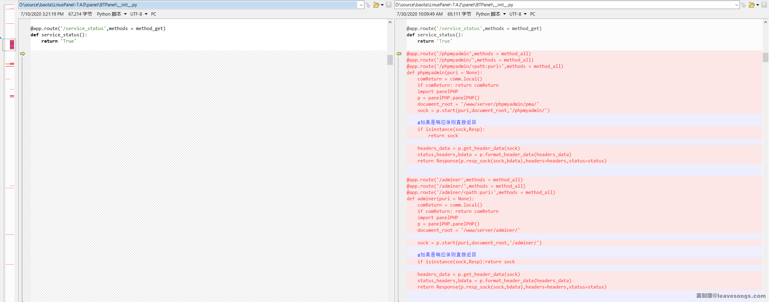 用beyond compare打开7.4.0和7.4.2的压缩包代码,看看具体增加了哪些代码: