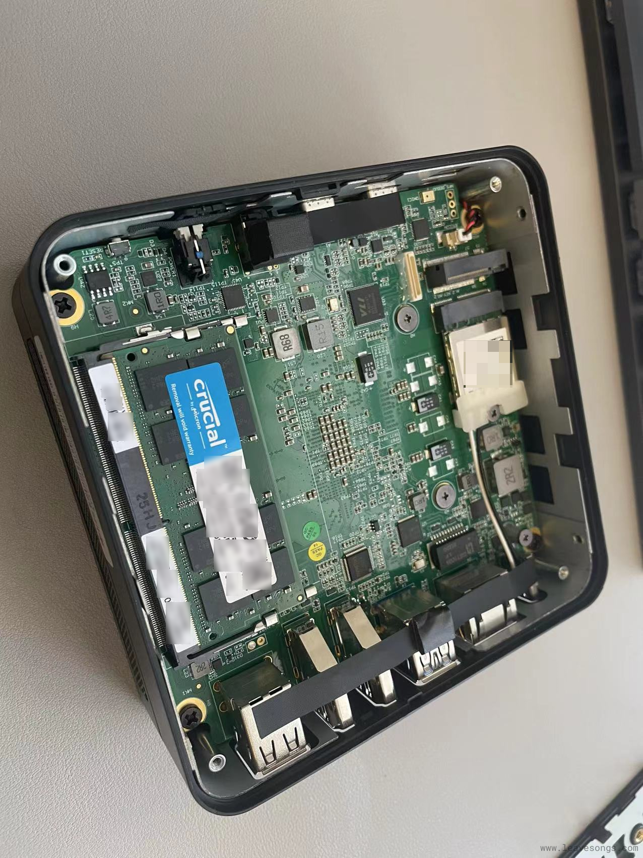内部做工还不错,很紧致,我只插了一块32G的内存,之后如果做homelab还可以再买一块做双通道: